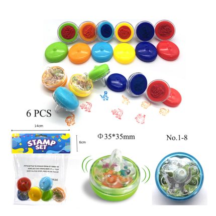 This innovative toy combines a spinning top, a chance-based game wheel, and a creative stamp into one compact design. The upper section features a transparent wheel numbered 1 through 8, with a free-rolling steel ball sealed inside. The lower section functions as a ready-to-use stamp.