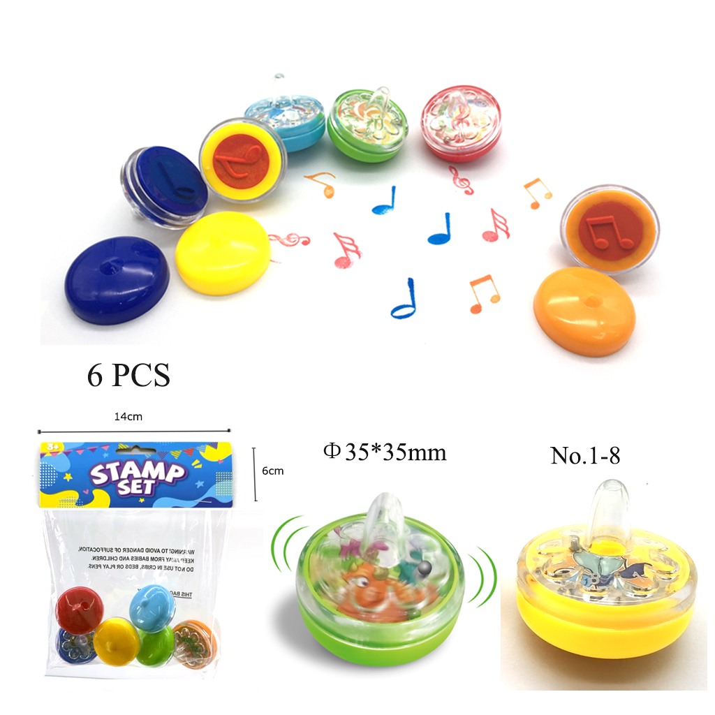 This innovative toy combines a spinning top, a chance-based game wheel, and a creative stamp into one compact design. The upper section features a transparent wheel numbered 1 through 8, with a free-rolling steel ball sealed inside. The lower section functions as a ready-to-use stamp.